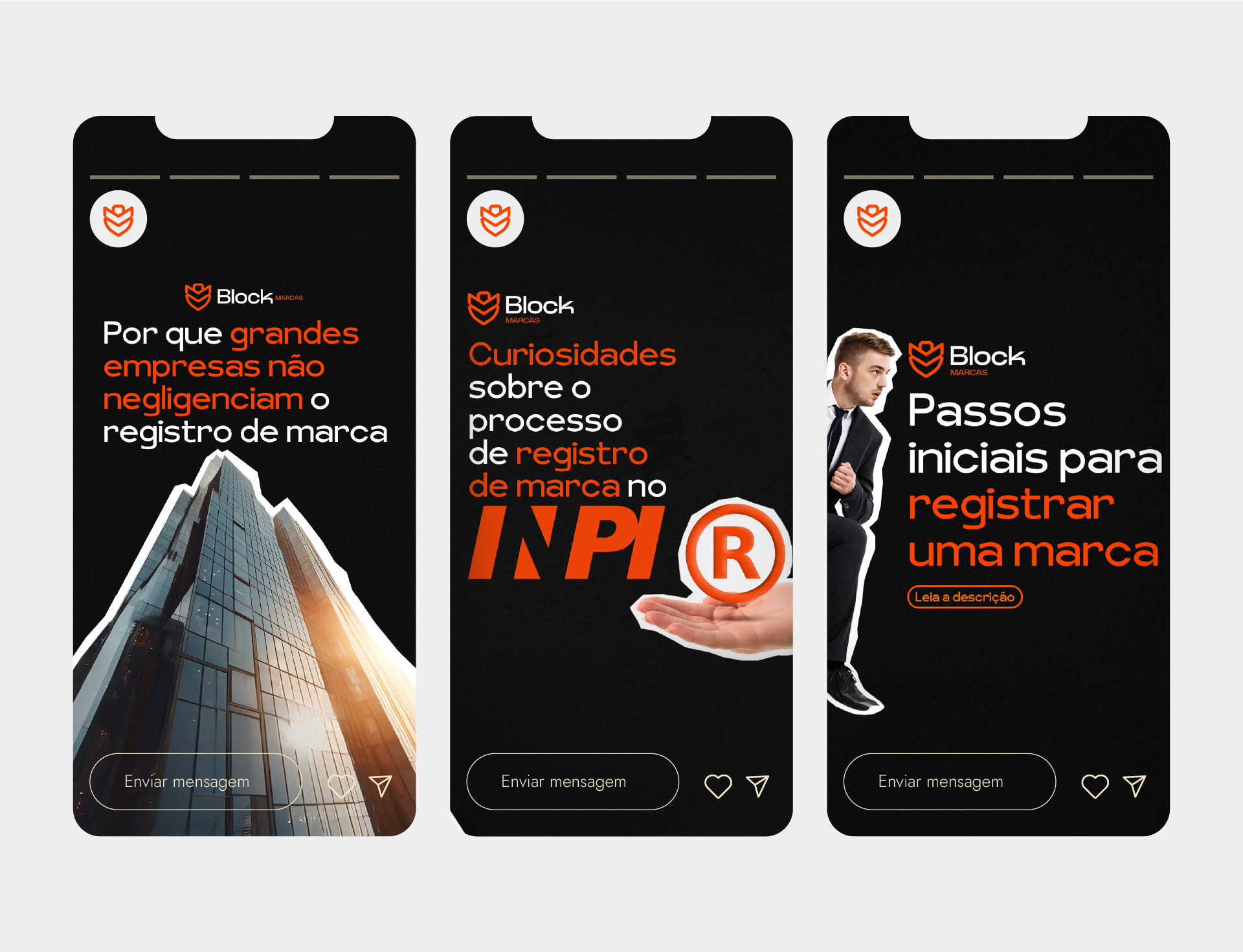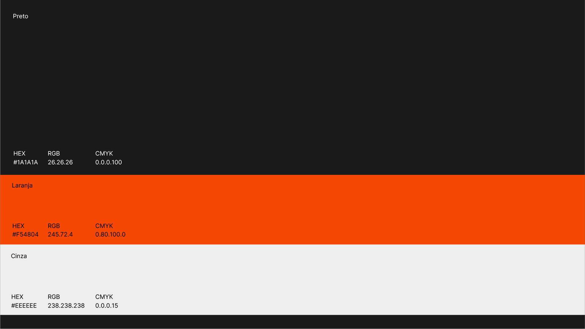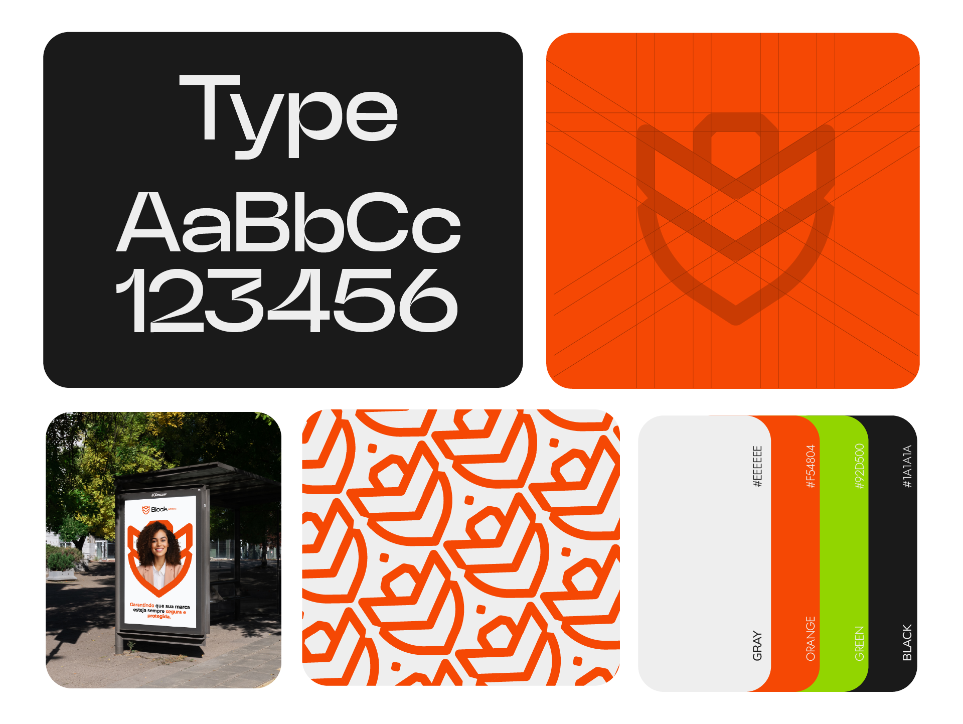 A paleta cromática foi estrategicamente escolhida para comunicar os valores fundamentais da marca: o preto traz autoridade e solidez, o laranja adiciona energia e dinamismo, o verde simboliza crescimento e confiança, enquanto o cinza oferece o equilíbrio necessário com sua neutralidade moderna.
