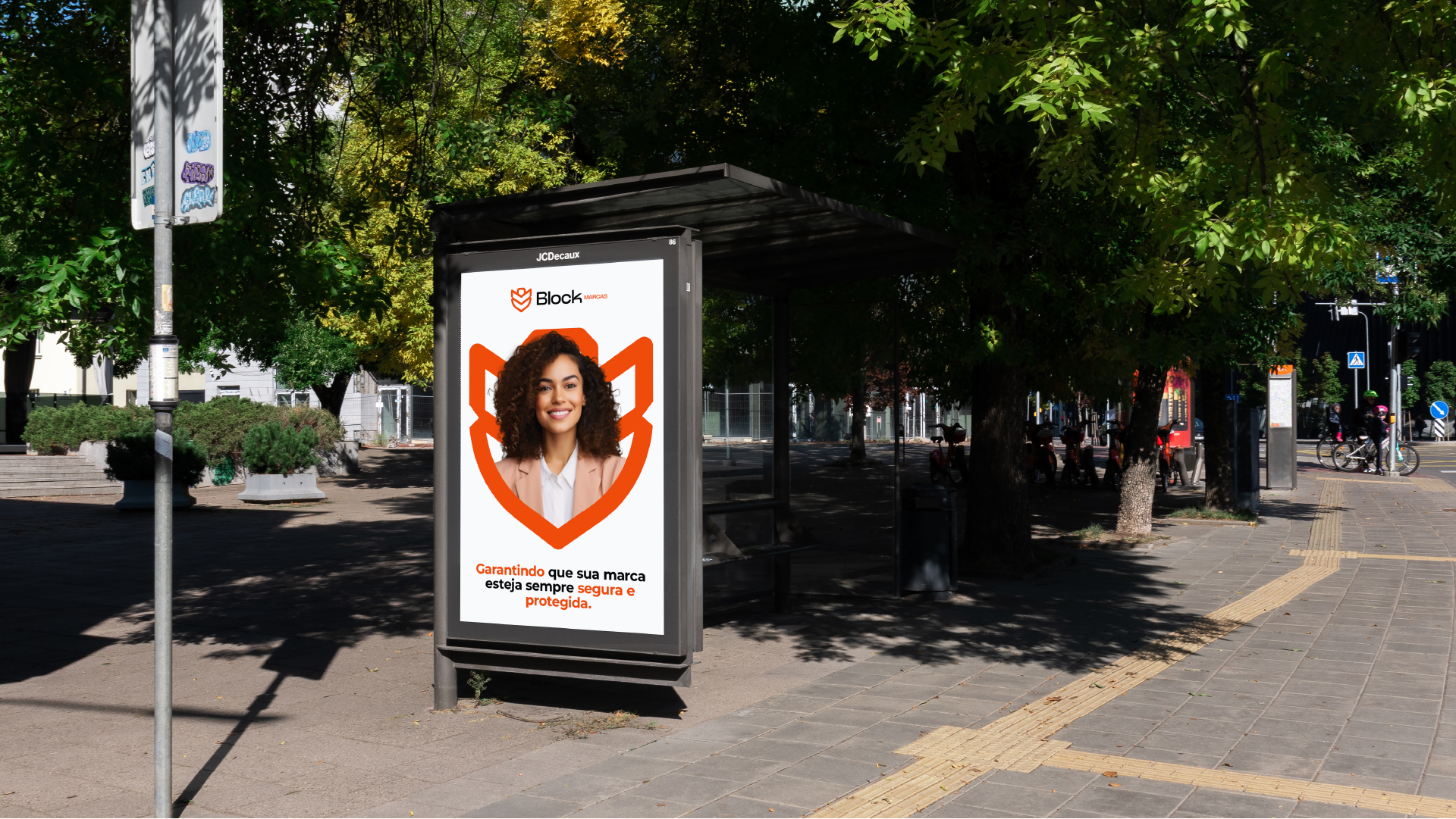 O símbolo principal combina um escudo com elementos de cadeado e a inicial "B", criando uma marca memorável que comunica instantaneamente segurança e proteção.