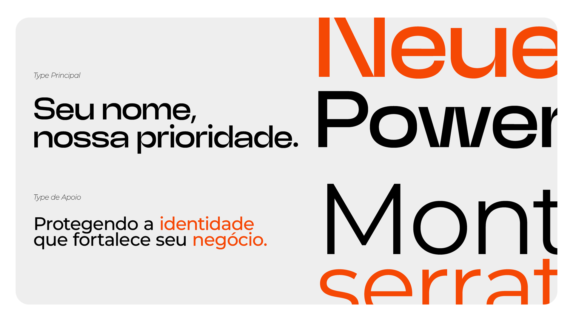 The typography combines the strength of Neue Power for the logo with the clarity of Montserrat for texts, creating a visual hierarchy that balances impact and readability.