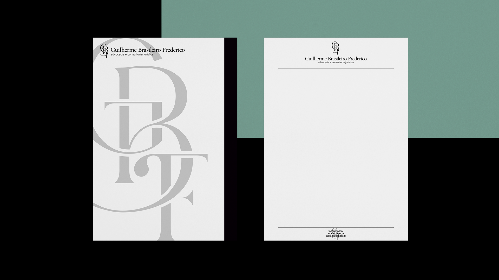 Com foco na pregnancia do seus nome e em suas inicias a marca traz como elemento principal a composição das letras G, B e F. Um perfil tipográfico é adotado e todas as cores e bases giram em torno da área de interesse e foco do profissional para alavancar ainda mais seu perfil para possíveis clientes.