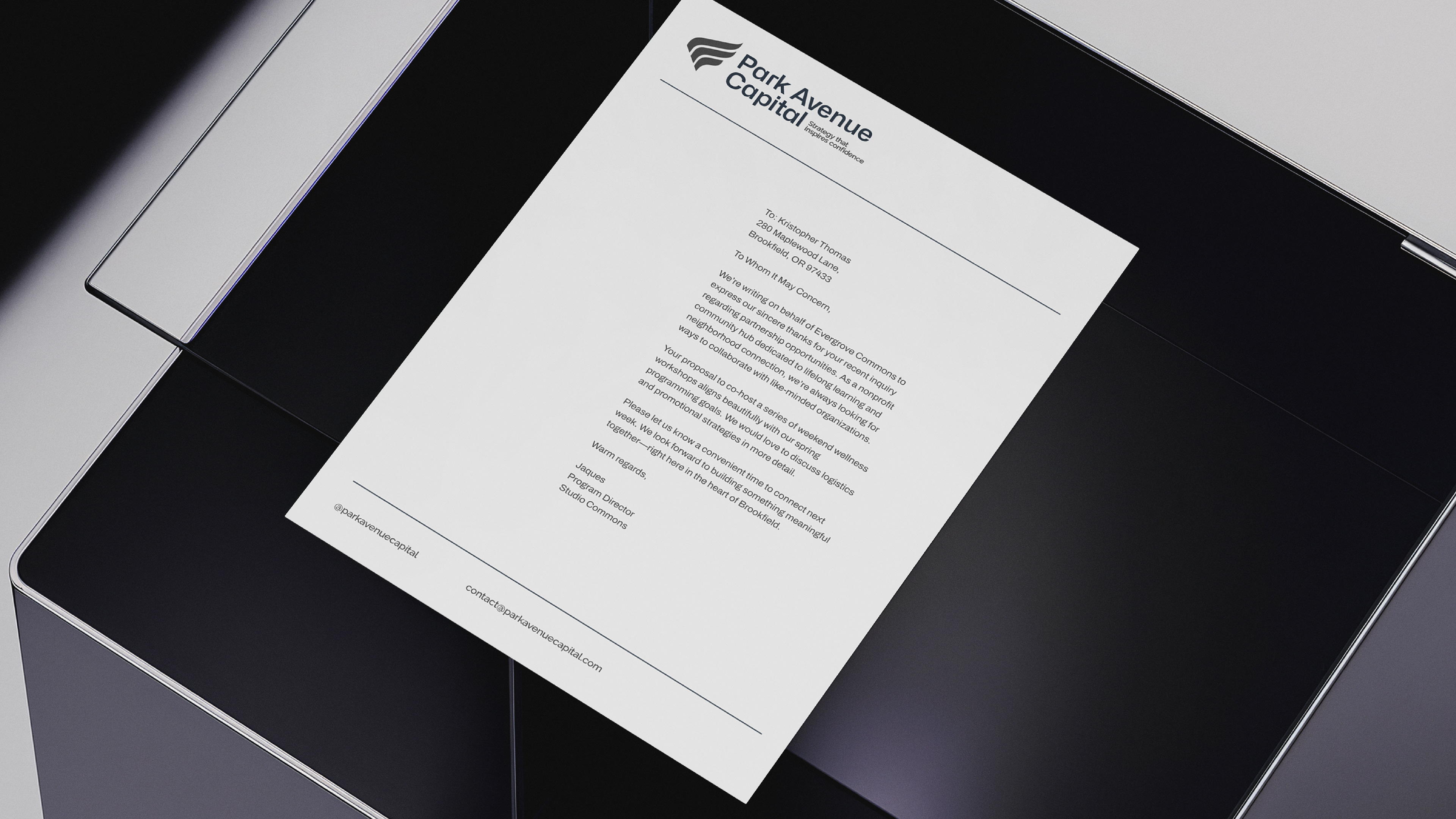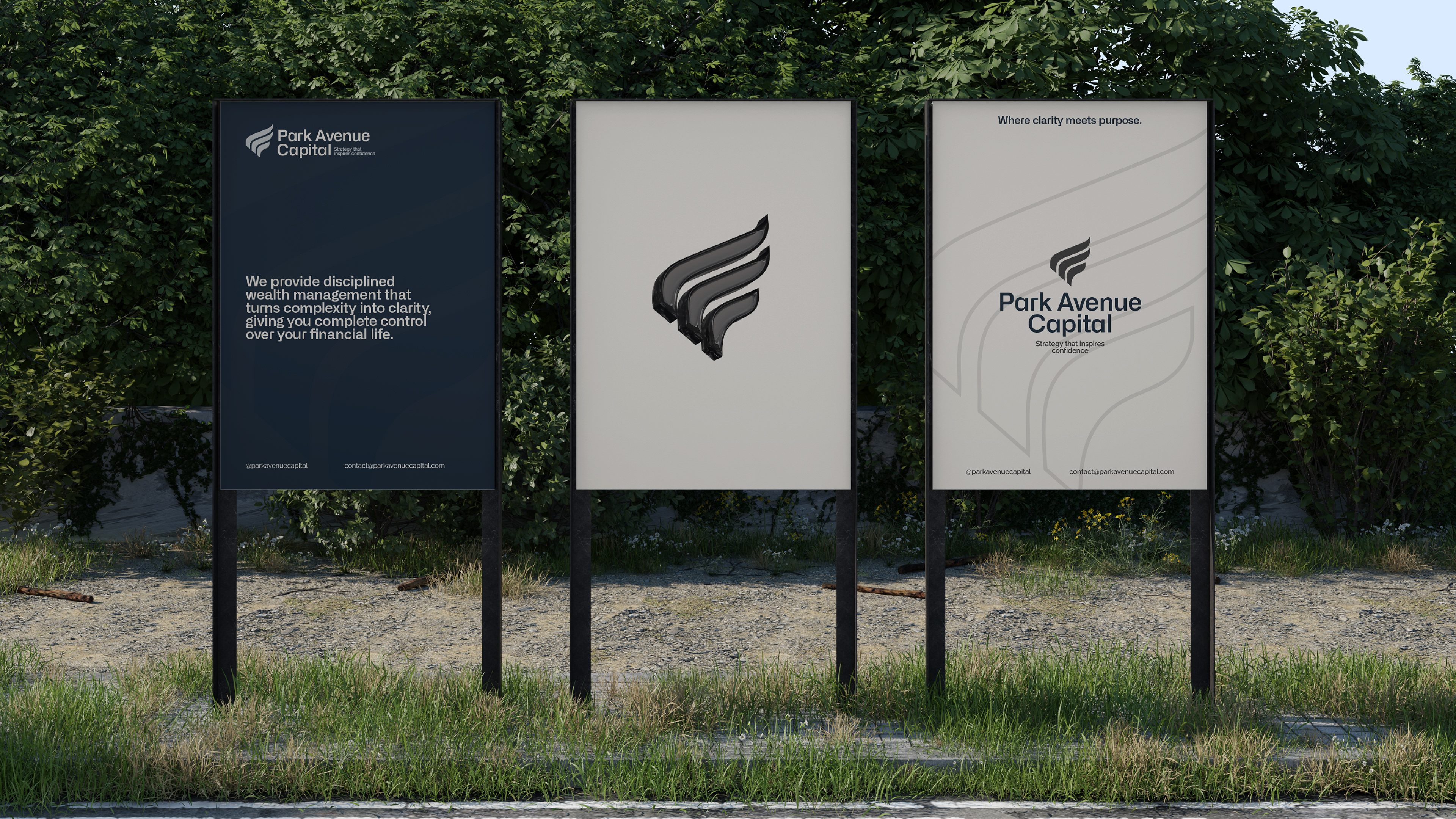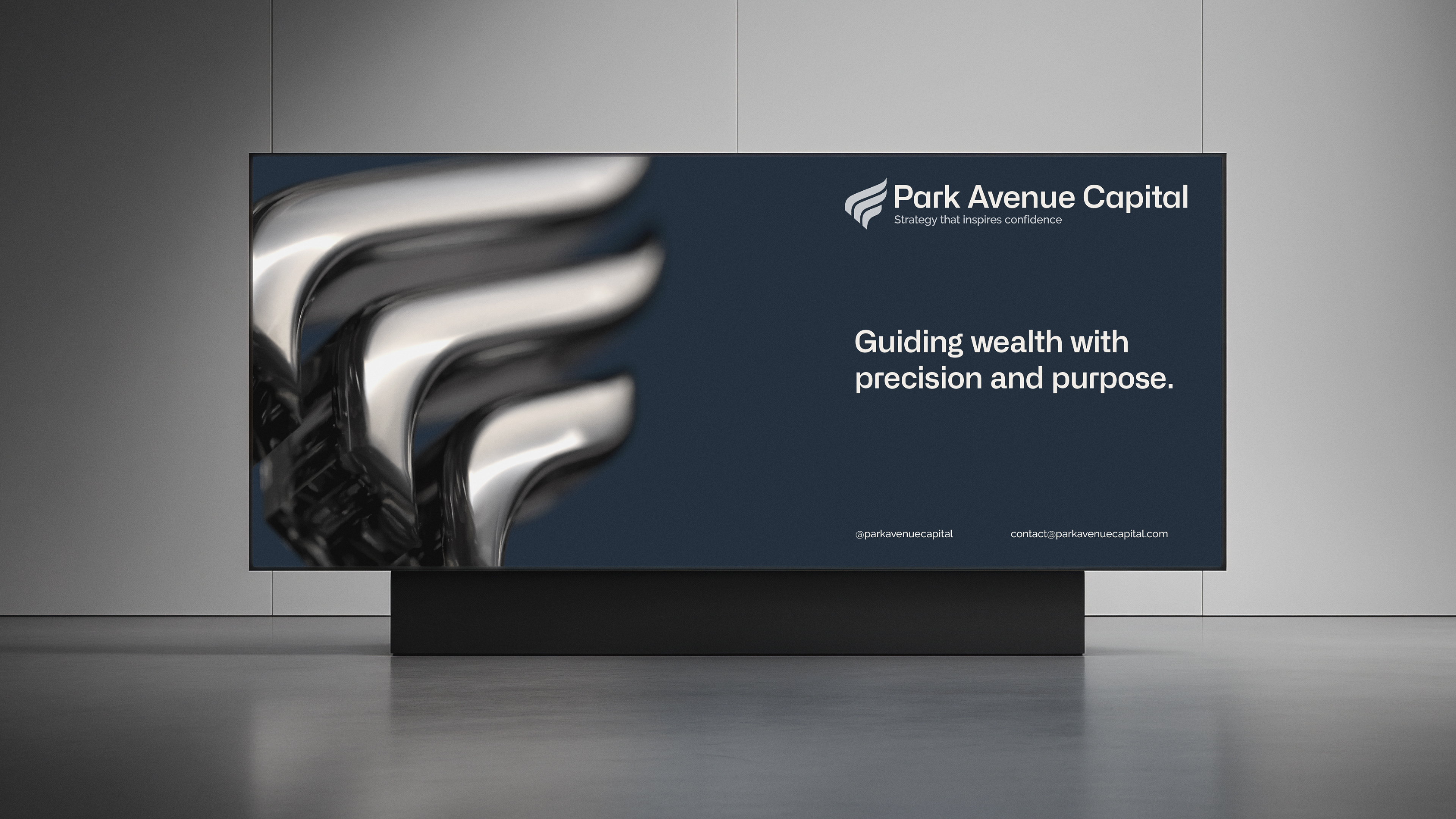 O desenvolvimento da identidade da Park Avenue Capital foi guiado por esses mesmos princípios. Cada escolha — da tipografia à paleta cromática, do ritmo visual ao tom institucional — foi pensada para traduzir solidez, precisão e sofisticação silenciosa. A identidade não busca excessos nem modismos: ela comunica confiança, governança e visão de longo prazo, refletindo uma marca que lidera com método, consistência e propósito.